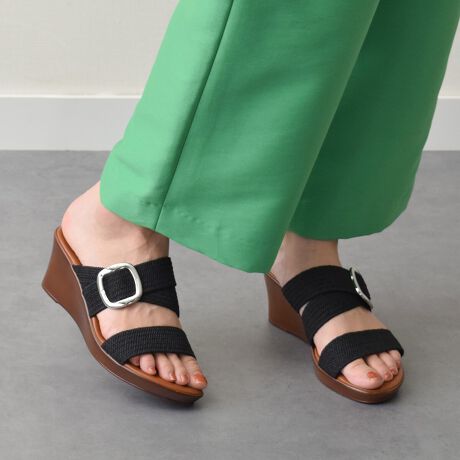 マルイウェブチャネル   /   シューズ   /   サンダル   /   ITALIAN SHOEMAKERS◆7cmヒール◆ビッグバックルウェッジミュールサンダル