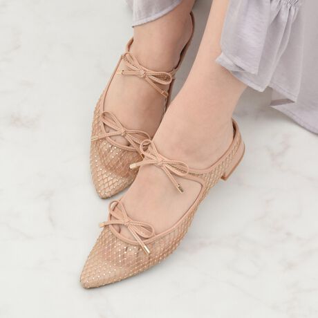 2つのリボンが程よくかわいいミュールパンプス。スカートにもパンツにも合わせやすいデザインで、普段のコーディネートをワンランクアップさせてくれるアイテムです。リボン先の金具がきれいめなアクセントに。ポインテッドトゥですが足あたりがよく、つま先が痛くなりにくいのもポイント。