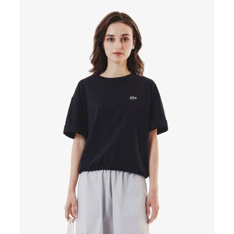 裾口ドローストリング入りクロップド5分袖 半袖Tシャツ