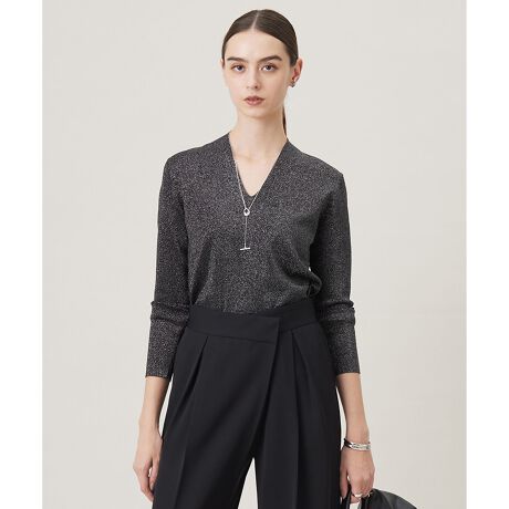 ■素材しなやかで優しいタッチとナチュラルなツヤ感が特徴のアセテートナイロンの糸を使用しています。ハイゲージでスムージーな適度に肉感のあるニット地に編み立てているので、高級感あふれる印象に。ストレッチ性も兼ね備え、肌心地は抜群、さらに吸放湿性や耐洗濯性も兼ねたイージーケア素材です。