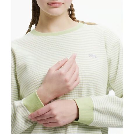 ホワイト、ライトブルー、グリーン、セージグリーンはボーダー柄と配色リブが特徴的で一枚で着用するのはもちろん、シャツやジャケットのインナーとしてもアクセントになる使い勝手の良い一枚です。