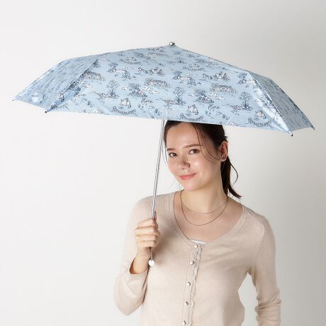 可愛らしい猫のプリントが目を惹く折りたたみ傘。