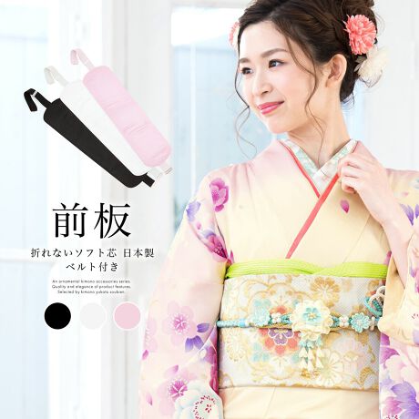 [型番:sbn01-wasou0090]■選べる3色!折れないソフト芯の前板■帯のしわを防ぐ便利な帯板です。ベルト付きの前板なので、初心者でも扱いやすくなっております。この帯板は、ポリエチレン芯を使用した「折れない前板」です。カジュアルからフォーマルまで幅広くお使いいただけます。