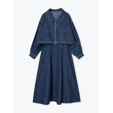 [SET]デニムジップアップブルゾン&ワンピース