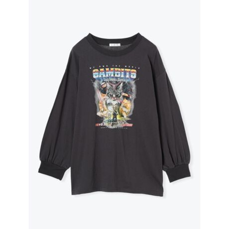 猫ビームプリントロングTシャツ
