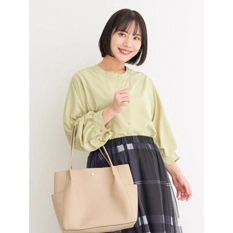 袖2WAYのアレンジが楽しめるキレイめノーカラーシャツ