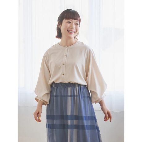 袖2WAYのアレンジが楽しめるキレイめノーカラーシャツ