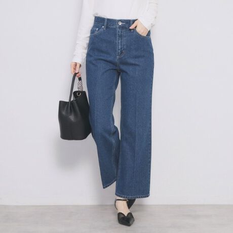 センタープレスが美脚見えするセミフレアのストレートデニム