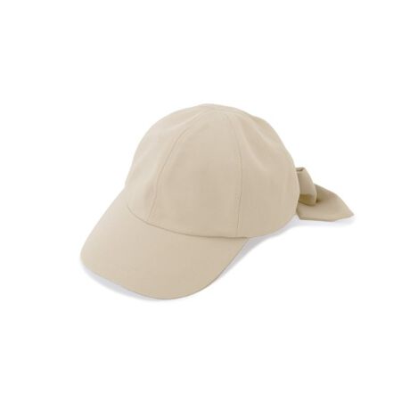前から見るとすっきりとしたデザインのキャップですが、後ろにボリュームのあるリボンをあしらいしました。