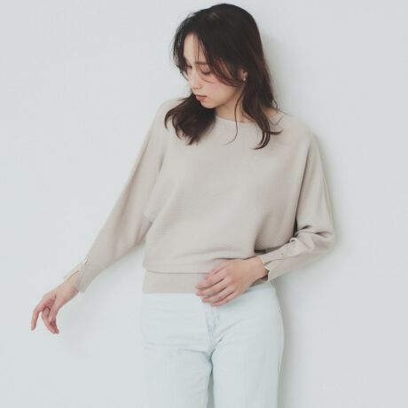 ・袖口のスリットが特徴的な7分袖のドルマンニット。