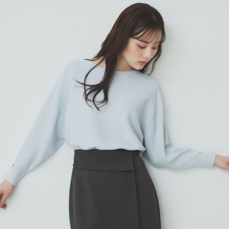 ・袖口のスリットが特徴的な7分袖のドルマンニット。