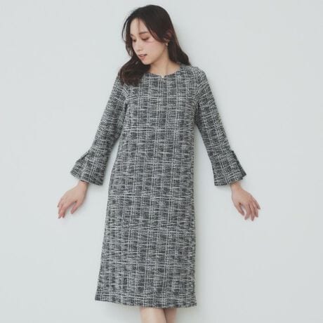 ・ラメツイードジャージを採用したこのワンピースは、シンプルでありながら華やかな印象を与えます。