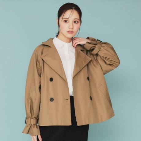 ・キャンディースリーブが魅力的なショートトレンチコートは、可愛さとスタイリッシュさを兼ね備えたアイテムです。