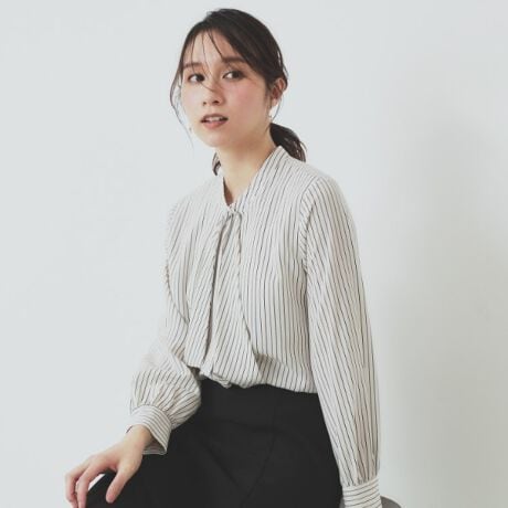 ・やわらかな素材なのでタックインもしやすく、アウトで着用してもレイヤードのニュアンスが華やかです。