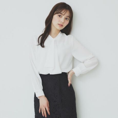 《美人百花掲載》アシンメトリーボウタイブラウス【洗濯機洗い可防シワ】