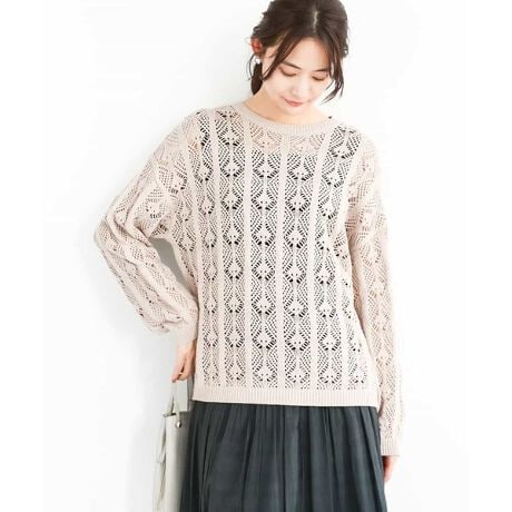 かぎ針風編み地がトレンド感のあるニットプルオーバー