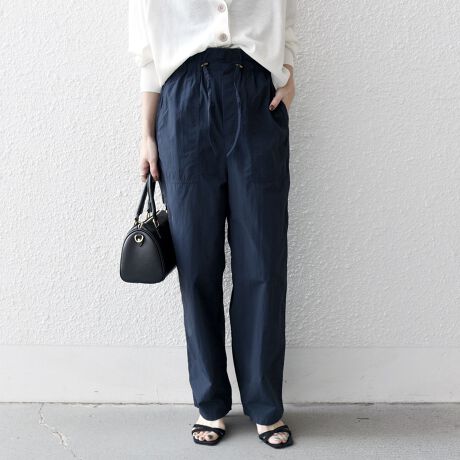 フロントのドロコードデザインがポイントのセミワイドパンツ。