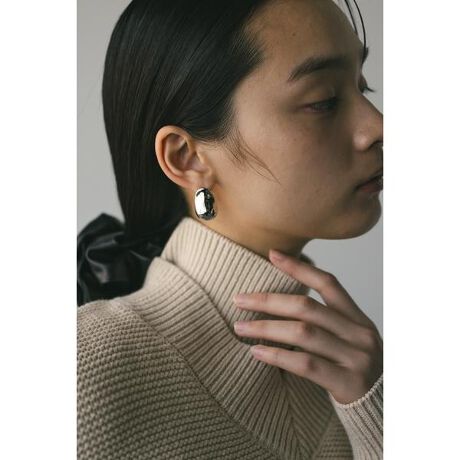 洗練されたフォルムが特徴的なドロップピアス。シンプルながら存在感があり、モードなスタイリングとの相性が良いです。