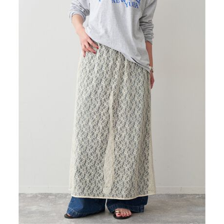 春らしいカットソーレース素材を使用したレイヤードスカート。