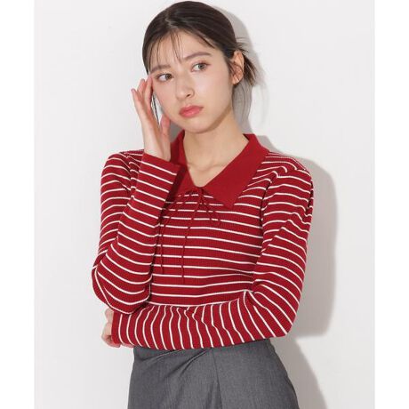 配色の襟と細リボンがクラシカルな雰囲気をプラスし、カジュアルながらも上品なスタイリングを楽しめます。赤いボーダー柄が視線を引き付け、着るだけで気分が上がるポップで元気な印象を演出。取り外し可能な細リボンは、気分やコーディネートに合わせてフェミニンにもシンプルにもアレンジ可能です。デニムアイテムやスカートを合わせるだけで、デイリーからお出かけまで幅広く活躍。華やかさと上品さが絶妙にマッチした、大人可愛い一着です。※撮影時照明の関係により、色味が違って見える場合がございます。またパソコン・スマートフォンなどの環境により、若干製品と画像のカラーが異なる場合もございます。予めご了承ください。商品の色味は、商品単品画像をご参照下さい。※商品画像はサンプルのため、色味やサイズ等の仕様に変更がある場合がございますので、予めご了承ください。