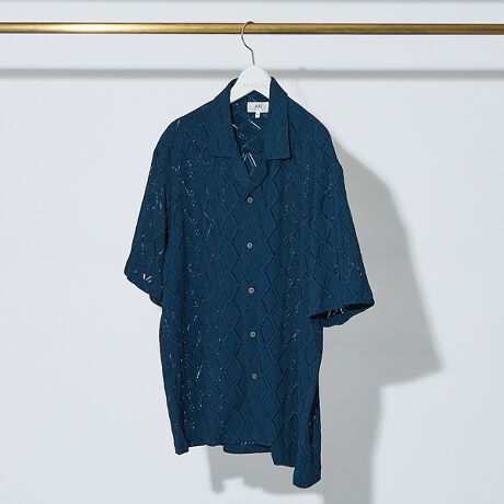 細かい凹凸とダイヤ柄シアー生地はトレンド感溢れる今期一押しのシャツ。衿型はオープンカラーにし、リラックスシルエットに仕上げラフでありながら清潔感がある印象に仕上がります。