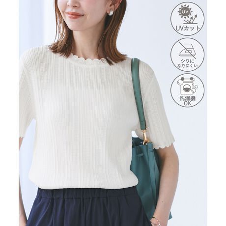 ・ネックと袖口のスカラップデザインが可愛らしい1枚。