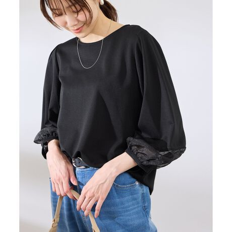 ・ボリュームスリーブは透け感があり、軽やかな印象に。