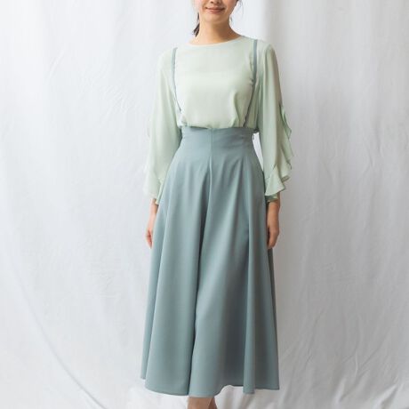動くたびに自然な揺らめきを演出するフレアシルエットが魅力的なパンツ。付属のサスペンダーは取り外すことができるので、気分やシーンに合わせたスタイリングを楽しめます。ウエストを締め付けないバックのゴム仕様がポイント。便利なサイドポケットがあしらわれています。タイ付きのシャツやブラウスなどと合わせたクラシカルな装いがおすすめです。