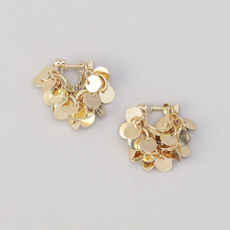 小さな丸型プレートが揺れるデザインが、シンプルなコーディネートにも華やかさをプラスするイヤリング。