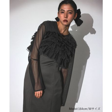 程よい透け感のチュールインナーは、長めの袖丈がポイント。