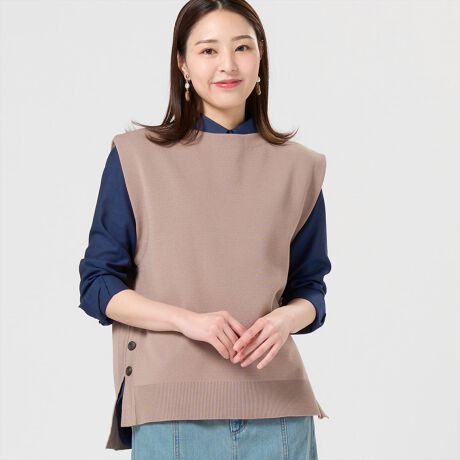 サイドスリットにあるボタンがアクセントのニットベスト。