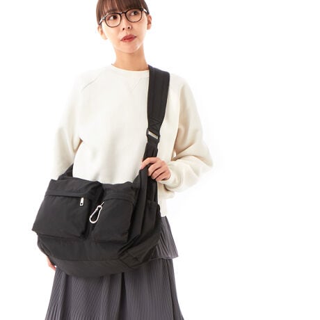 [型番:RBB-252]A4サイズが収納可能で軽量な素材感の取り回しがしやすいショルダーバッグ前面には立体的なポケットを備え、サイドや背面にもポケットがあるので小物の収納もバッチリ便利なカラビナも付いています仕様 |ファスナー式開閉内側:ファスナーポケット×1メッシュポケット×2前面:ファスナーポケット×2背面:ファスナーポケット×1