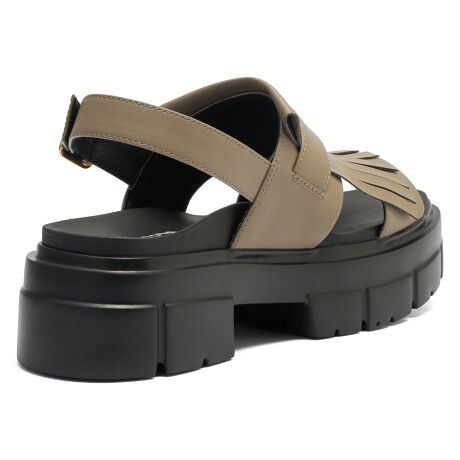[型番:AO-10266]【オトナの厚底トラッドサンダル フリンジデザイン】・ウイズ:3E相当・靴の内側の合成繊維にリサイクル素材を採用し、環境に配慮。・靴の内側はやわらかい素材を採用し、足あたりの良い履き心地を追求。・足裏に沿うフットベッド(中敷)を採用し、フィット感に配慮。・クッション感のあるE.V.A.ソールでソフトな履き心地を追求。