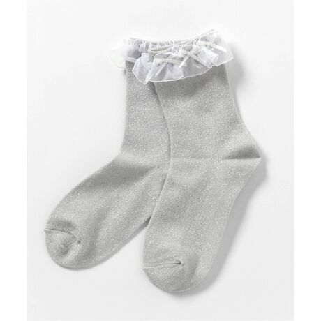 apres les cours(アプレレクール)のタイツ・ソックス「フリルリボンソックス」は、足元からおしゃれになれるデザイン。おようふくとのスタイリングも楽しんで。