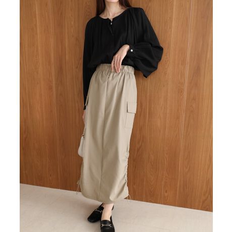 カーゴならではの、サイドにデザインされた立体的なポケットがスタイリングのポイントに。シャーリングをお好みで絞って、丈感やシルエットのアレンジが可能です。ウエストゴム仕様で履き心地もよく、バックスリットで抜け感をプラスして歩きやすく仕上げました。季節を問わずオールシーズン着まわせるアイテムです。