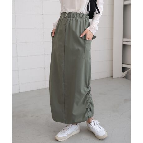 カーゴならではの、サイドにデザインされた立体的なポケットがスタイリングのポイントに。シャーリングをお好みで絞って、丈感やシルエットのアレンジが可能です。ウエストゴム仕様で履き心地もよく、バックスリットで抜け感をプラスして歩きやすく仕上げました。季節を問わずオールシーズン着まわせるアイテムです。