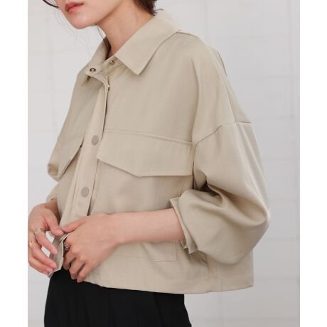 ポイントのビックポケットとコンパクトな丈感が旬なジャケットが登場!コンパクトなシルエットでありながら、ゆったりとした着心地でカーディガンやシャツのような感覚でさらっと羽織っていただけます。バランスの良いボックスシルエットのショート丈で、スタイルアップにも効果的なデザイン。アクセントを効かせるフロントと袖口の釦ディテールです。キレイめなシルエットに拘りカジュアル感があるので、ON/OFFの着回しに活躍します。