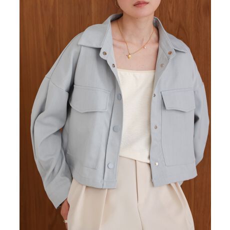ポイントのビックポケットとコンパクトな丈感が旬なジャケットが登場!コンパクトなシルエットでありながら、ゆったりとした着心地でカーディガンやシャツのような感覚でさらっと羽織っていただけます。バランスの良いボックスシルエットのショート丈で、スタイルアップにも効果的なデザイン。アクセントを効かせるフロントと袖口の釦ディテールです。キレイめなシルエットに拘りカジュアル感があるので、ON/OFFの着回しに活躍します。