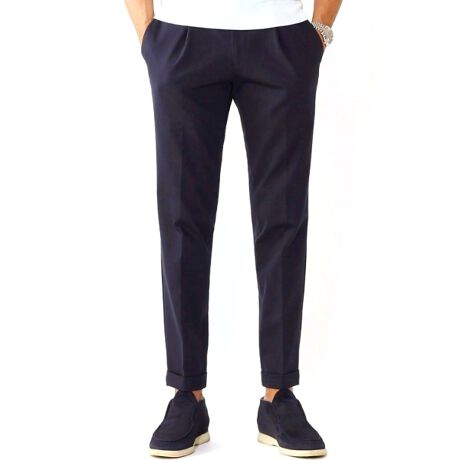 ワンタックから流れる美しいクリースは、ジャージ素材とは感じさせない上品な雰囲気を持っています。