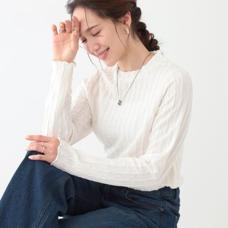 ポコポコとした表面が特徴的なふくれジャカード素材のデザイントップスです。