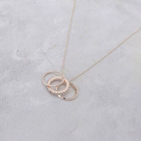 上品なビジューリングとデザインリングを組み合わせスライドネックレス。