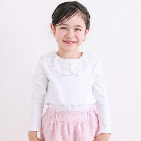 ブラウス感覚でコーデの幅が広がるレースの襟が可愛い長袖Tシャツ。