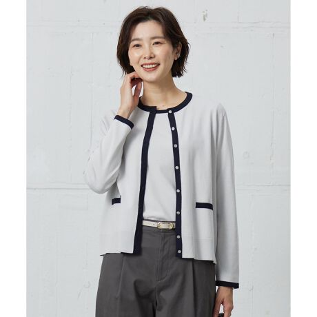 J.PRESSオリジナルのメタル釦が上品なクルーネックのアンサンブルニット。秋にご好評頂いている、トリム配色のツインを春素材で作りました。配色ラインが、クラシカルなムードを演出します。ツインセットでもカーディガン、インナーそれぞれ単品でもコーディネートのアクセントになり、きれいめお出かけスタイルやオフィスシーンに活躍します。