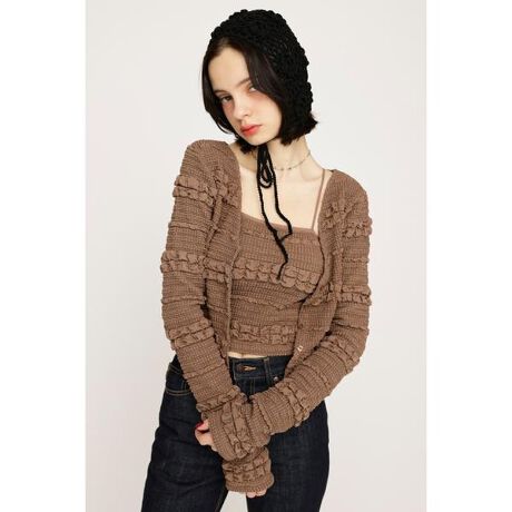 【FRONT BUTTON CAMI 2P】■POINT:キャミソールとカーディガンの嬉しい2ピースセットのアイテム。カットソー素材なので、春夏秋と長い期間で着用できます。■DETAIL:Vネックのカーディガンなので、デコルテ周りはすっきりとした印象に。インナーのキャミソールは肩紐を細くしているので、一枚で着用しても華奢で女性らしい雰囲気を演出してくれます。■STYLING:単体でも着回しでき、定番のデニムと合わせるのがおすすめです。バランスの取りやすいジャスト丈なので、ボトムスを選ばず着用できます。■FABRIC/MATERIAL:ポコポコとした表面感のあるカットソー素材のふくれジャガードを使用しています。■透け感:なし■光沢感:なし■伸縮性:あり■裏地:なし※本品は素材の特性上色落ちします。洗濯、クリーニング、着用(使用)時に他の衣類や雑貨、家具類に色移りする事があります。特に汗や雨等で湿った状態では、色落ちが顕著になります。白、淡色との組み合わせは避け、お取り扱いには十分ご注意下さい。本品は過度な力の加わりで縫い目が開いたり、織り糸が滑り織目が開く性質があります。また、引っ掛けにより糸の飛び出しや引きつれが生じやすいのでご注意下さい。※商品画像はサンプルのため、色味やサイズ、素材の混率等の仕様に変更がある場合がございますので、予めご了承ください。※一部予約商品につきましては生産上の都合によりお届け予定日や店頭発売と前後する場合もございます。※追加生産商品は、一部の店舗、通販で販売中の場合がございます。予めご了承下さい。