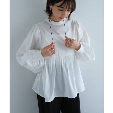 2way ボリューム 長袖 ペプラム シャツ ブラウス