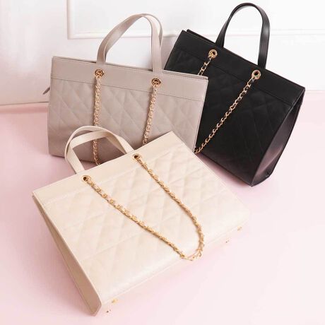 A4対応 チェーンショルダー キルティングトートバッグ