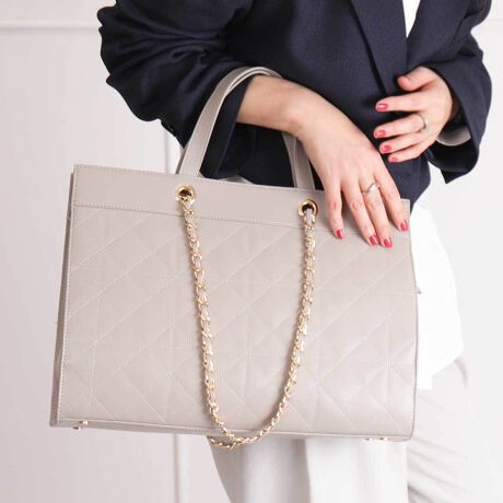 A4対応 チェーンショルダー キルティングトートバッグ