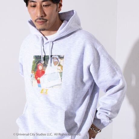 パーカーを着ている主人公のエリオット、E.T.とリンクコーデする遊びの効いた映画好きにはたまらない1着となっております。