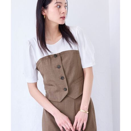 袖のパフスリーブが女らしいビスチェドッキングのプルオーバー。