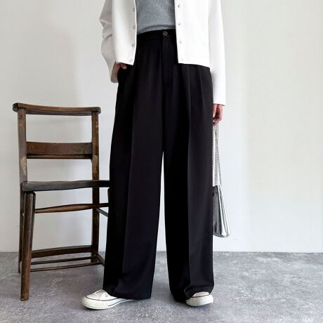 ・2タック入りのデザインですっきりとした縦長効果を着こなしにプラス